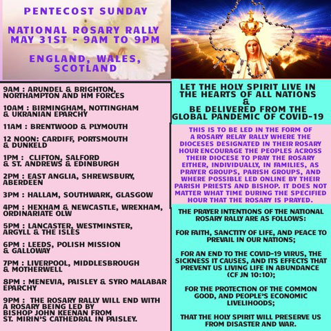 PENTECOST NATIONAL ROSARY RALLY MAY 31ST: 9AM – 9PM IN ENGLAND, WALES AND SCOTLAND